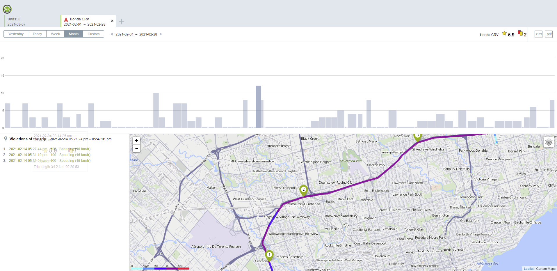 Our Fleet Management Software provides impactful and relevant data of all activities such as driving behavior, fuel costs, mileage, idling time, the total cost per travel, etc…