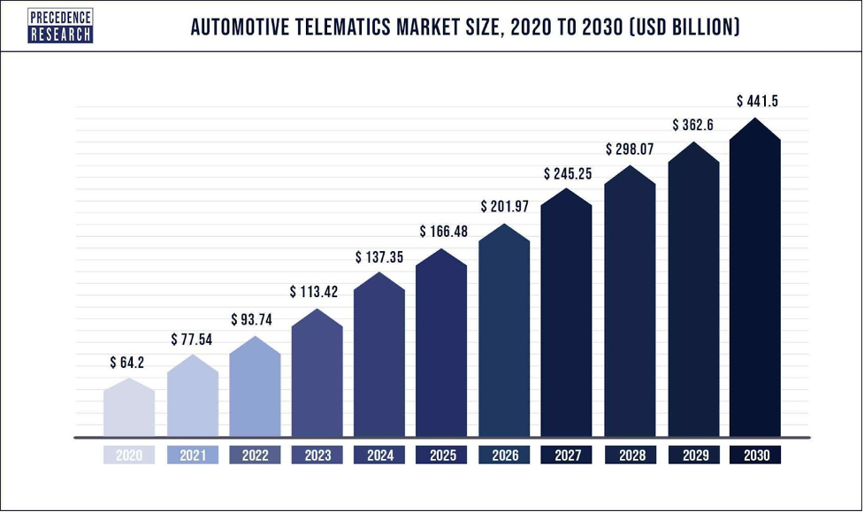 Transport telematics has grown rapidly in the last 10-15 years. This steady growth continues as it is expected to hit US$ 441.5 billion by 2030, poised to grow at a CAGR of 21.3% from 2021 to 2030.