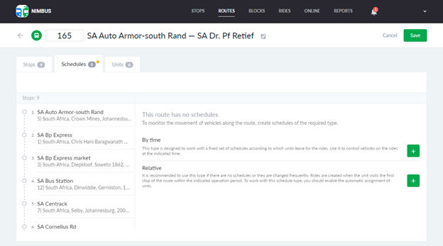 The new feature allows the creation of rides upon visiting the first stop of the route just like when units are automatically assigned to a ride, but only without a specific schedule. You can create relative schedules or change the type of schedules you already have.