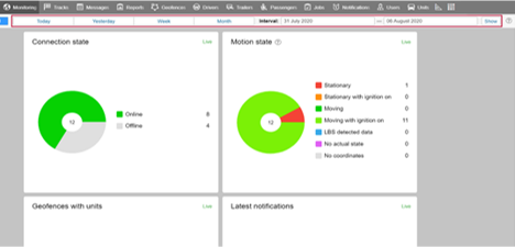 Users can now either select one of the pre-set period buttons (Today, Yesterday, Week, and Month), or they can use the date range selection by specifying a particular date range using the calendar which will open upon click on the either start or end date boxes (see screenshot).